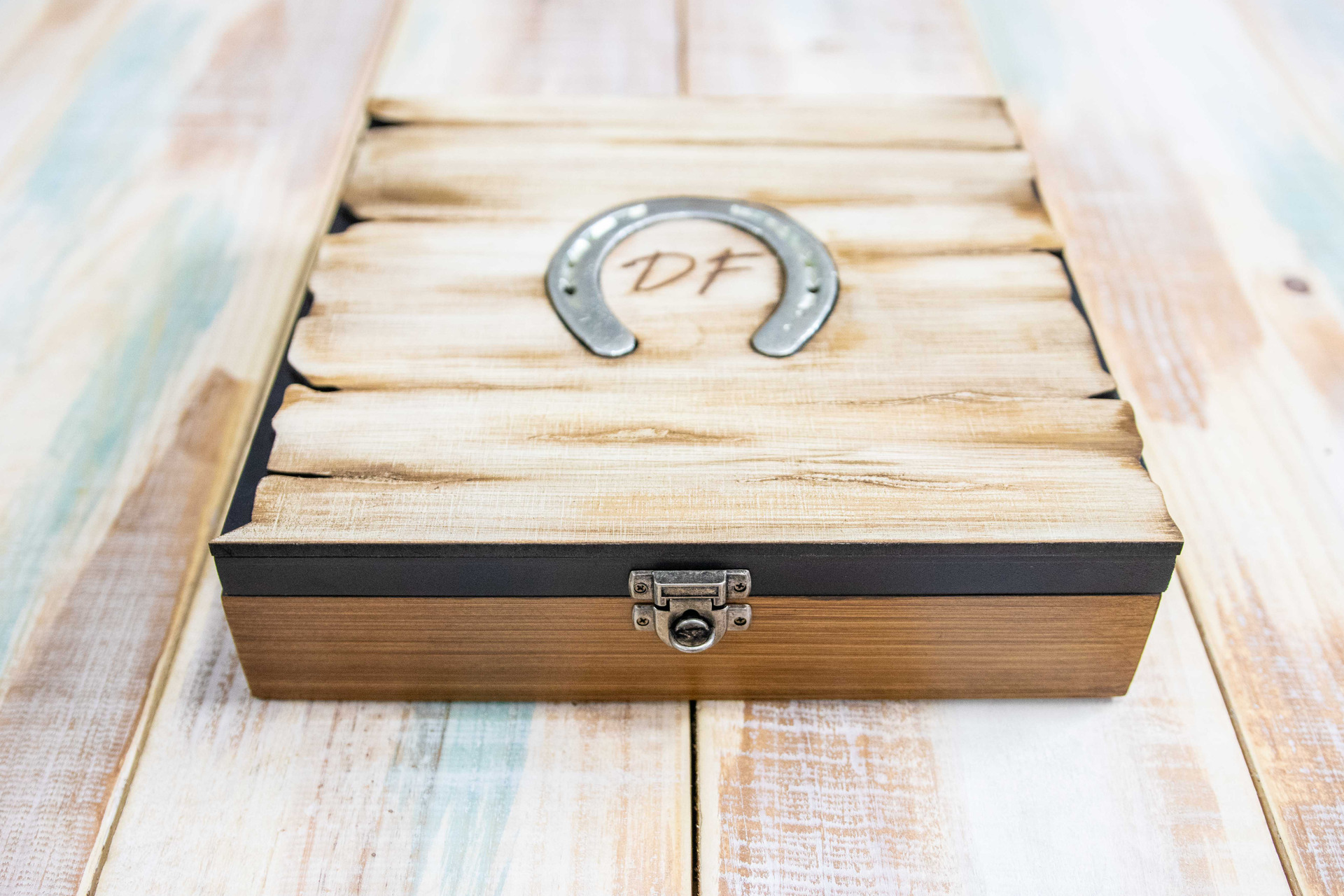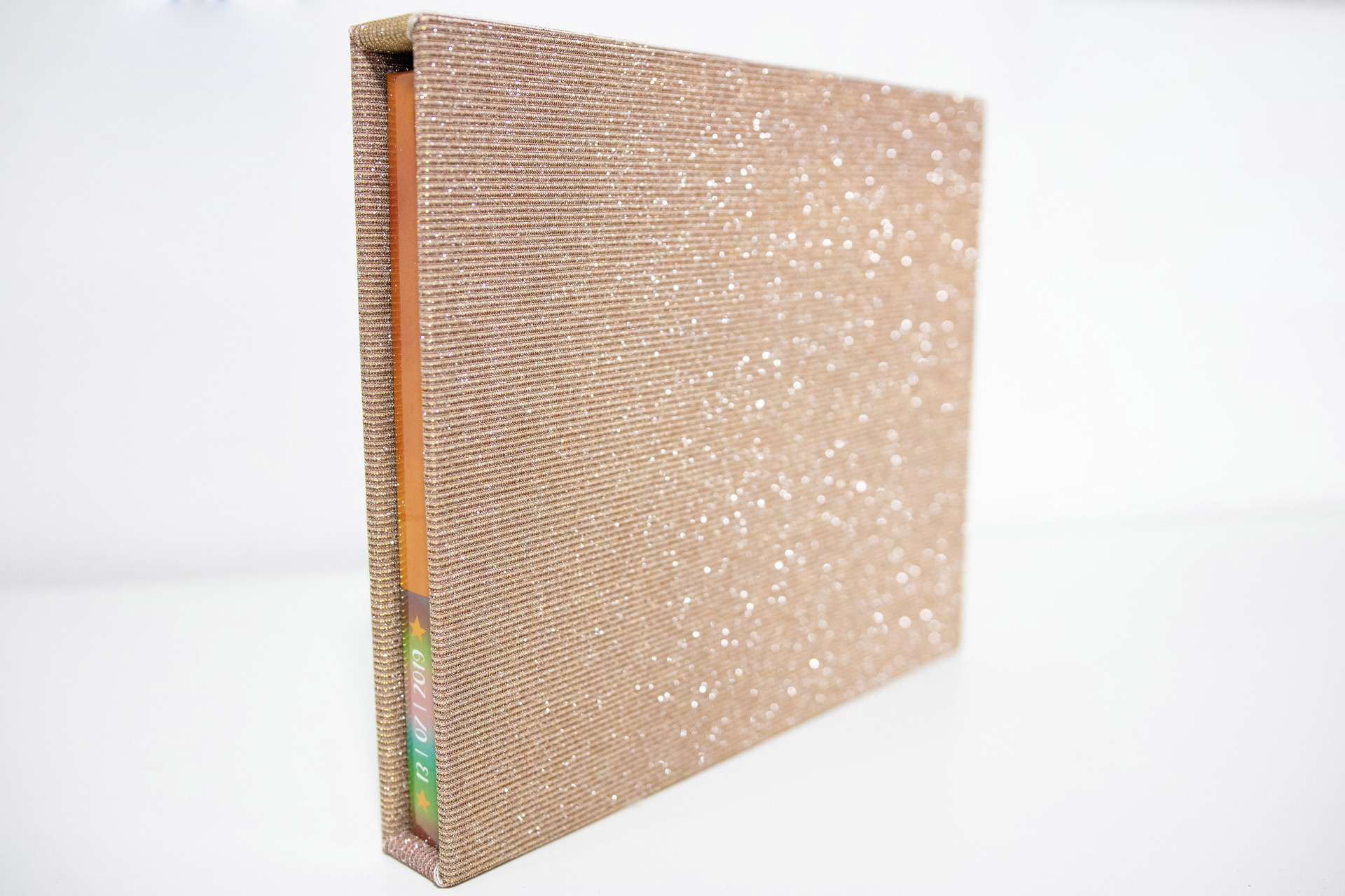 A caixa é utilizada para guardar e envolver o álbum e ela é em MDF,